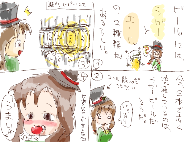 追記:その後、いろいろ調べているうちにすでに、エールビールを飲んだことがあることが、判明しました。知識は広がりましたが、ちょっとがっかりのような、複雑な気分です(´・ω・`)